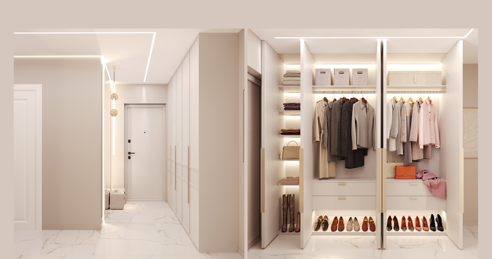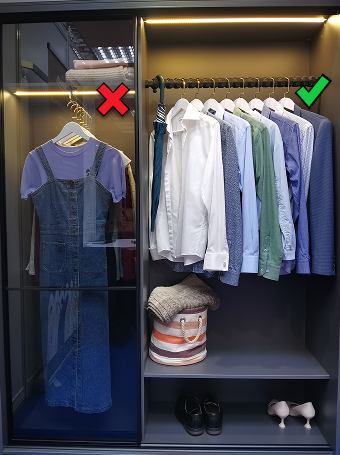 При этом нужно понимать, что сравнивать вместительность шкафа с накладкой нужно с аналогичным шкафом с поперечной штангой. Полноразмерный шкаф всегда будет выигрывать по вместительности и у накладки, и у поперечной выдвижной штанги.