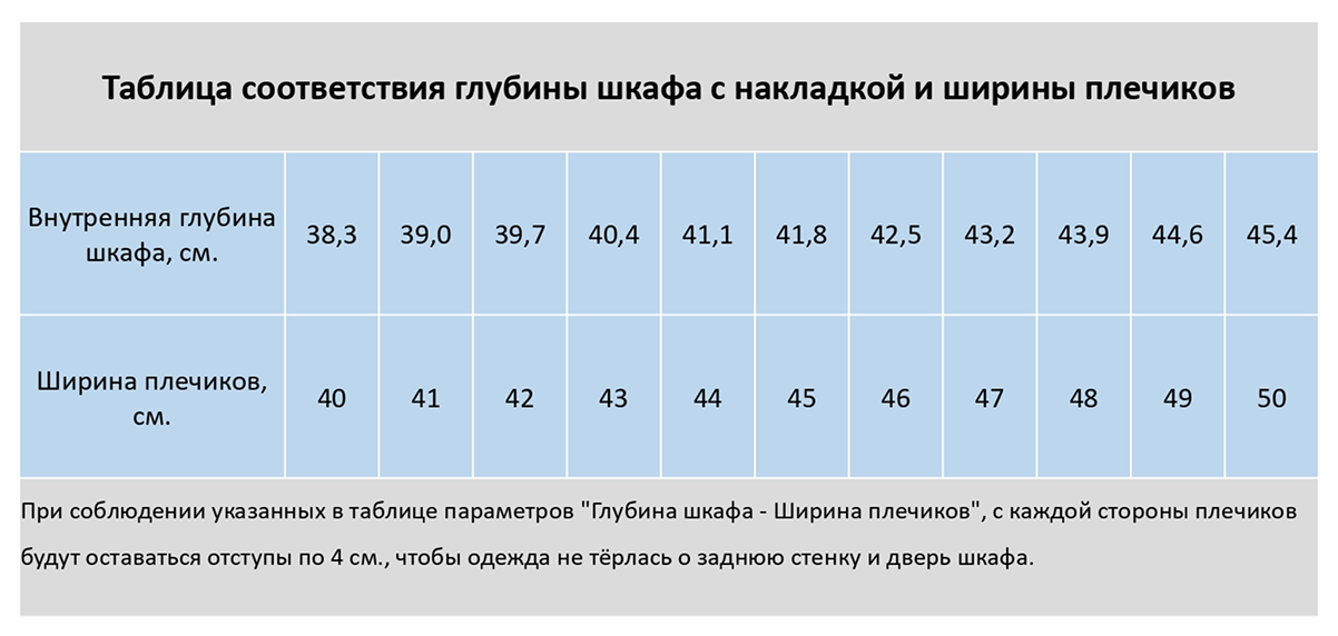 ✓ В шкафах внутренней глубиной 40 см. накладку Foscrinium целесообразно использовать при внутренней ширине отделения для штанги 60 см. и более.