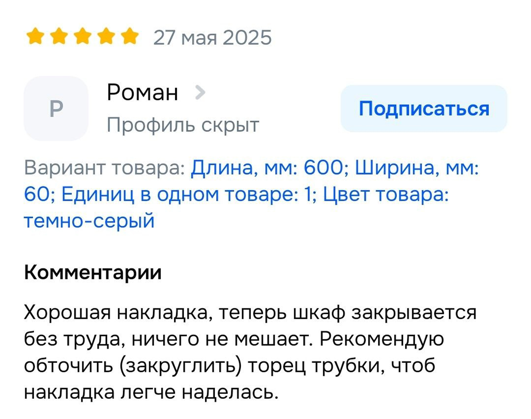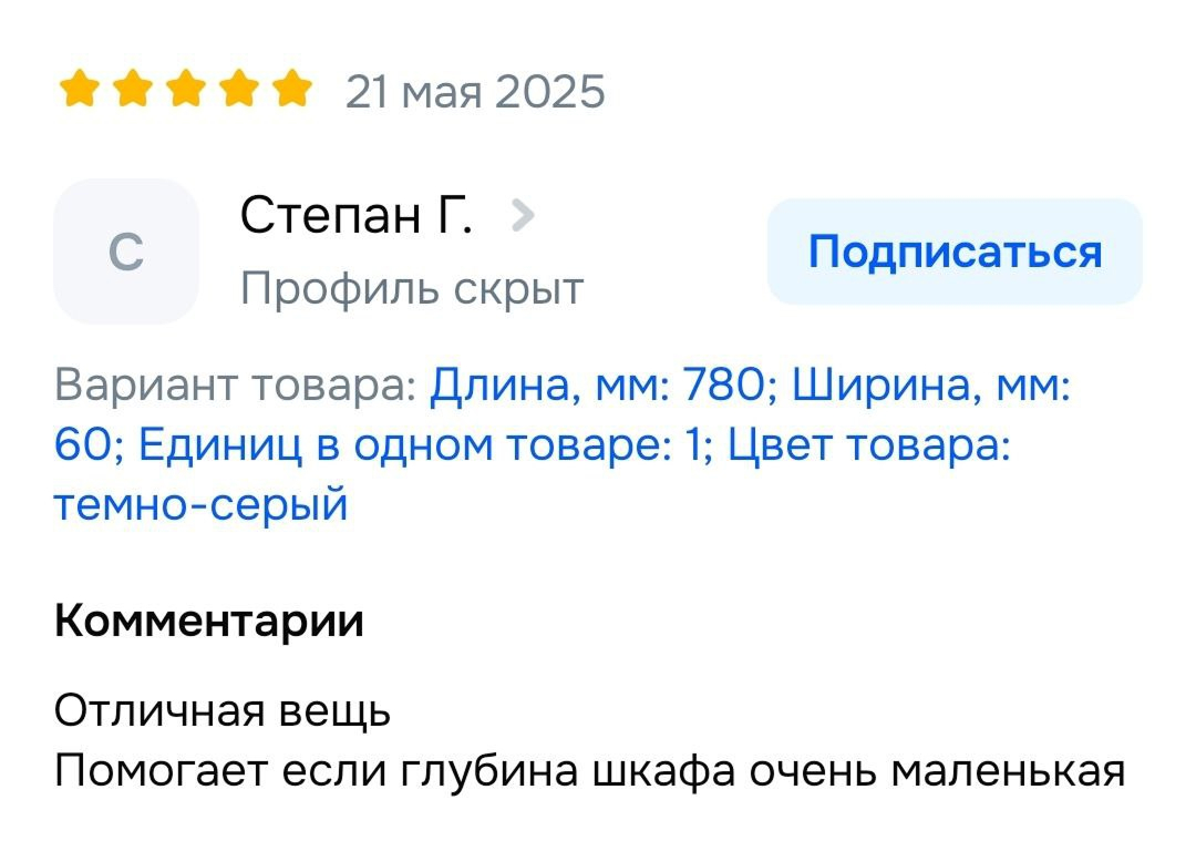 ✓ В шкафах внутренней глубиной 45 см. накладку Foscrinium целесообразно использовать при внутренней ширине отделения для штанги 80 см. и более.