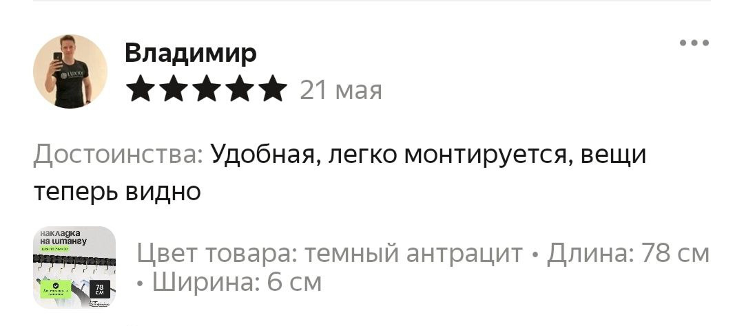 ✓ Связано это с тем, что при расположении плечиков под углом 45º, некоторая часть штанги с обоих концов остаётся незадействованной. Таким образом, полезная длина* штанги будет меньше. Незадействованное пространство по краям при этом можно использовать для узких детских плечиков, вешалок для брюк, ремней, шарфов, палантинов, а также зонтов и других предметов гардероба.